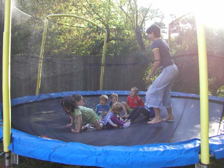 Avyn's Birthday Party, October 9, 2004 / AvynBDayParty2004_BS_MonicaBouncingKidsOnTrampoline