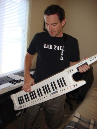 | Chris and Nicole Wedding at Laguna Beach, June 5, 2008 / Blackmail Pic Of Cameron I told Cameron to let me take some kind of photo that we could use to make fun of him 20 years from now (I really did say that). He delivered! He has a Keytar. Cam's best quote to me was that he felt the Keytar was the most unappreciated instrument of the 1980's. Oh, I can only imagine where this photo will turn up! |