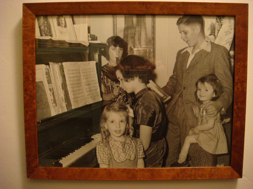 | Chris and Nicole Wedding at Laguna Beach, June 5, 2008 / My mom Ann as a Girl Playing Clarinet (and also in the pic on top of the Piano within the photo), with her siblings Susie, Sally, Kathy and Malcolm The girl playing the piano is our lovable Aunt Sally. The little girl on the far right is Aunt Kathy, the mother of the groom. |